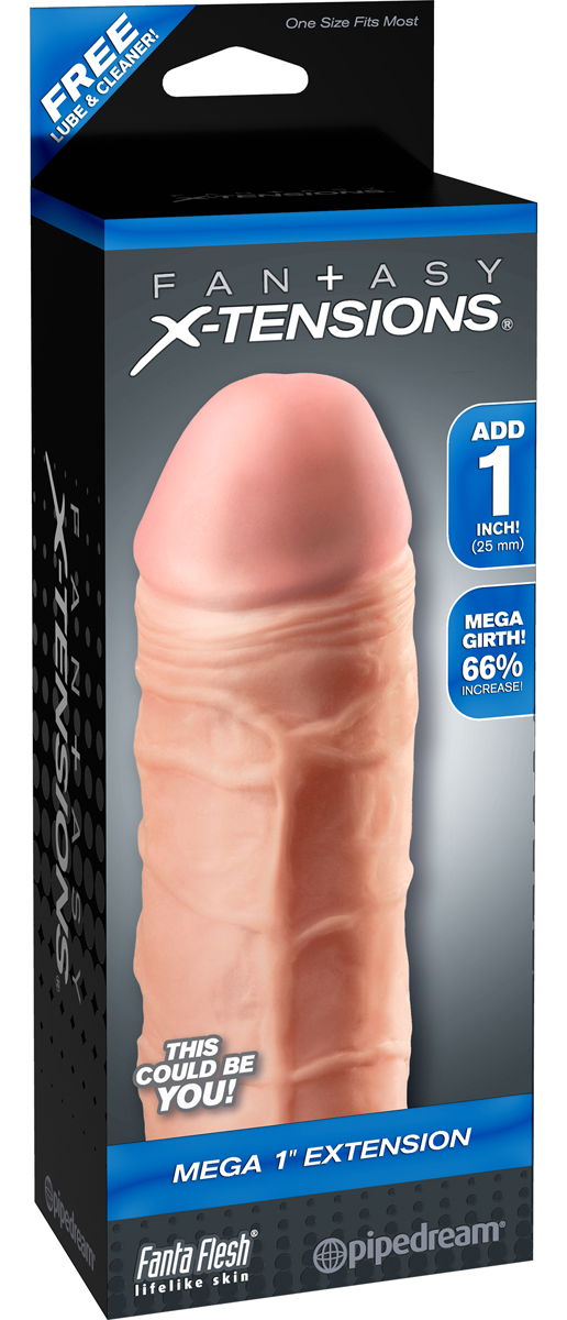 Реалистичная насадка с выделяющимися венами, складками, ярко выраженной головкой. Изготовлена из супер-эластичного Fanta Flesh материала. Материал не содержит фталатов. Подходит для большинства размеров. Увеличивает диаметр (даёт в среднем 66% увеличения в диаметре от исходных параметров) и увеличивает длину на 2,5 см. Легко обрезается у основания для идеальной подгонки под индивидуальные параметры. Может использоваться как мастурбатор. Минимальный внутренний диаметр - 3 см.