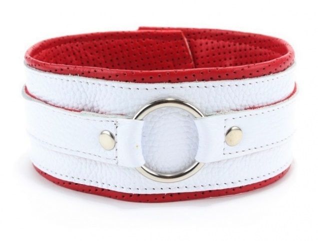 Бело-красный кожаный ошейник.