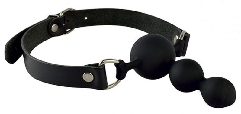 Силиконовый кляп в виде последовательно расположенных сфер, прикреплен к ремешкам из натуральной кожи. Регулируется кляп при помощи металлической пряжки. Металлическая фурнитура имеет никелевое покрытие. Общая длина 59 см. Max диаметр шара 38 мм, длина кляпа 10 см. Ширина ремешков 20 мм. Длина кляпа - 10 см. Ширина ремешков - 2 см.