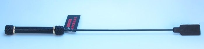 Стек сделан из прочного сердечника с оплетением из кожи. Наконечник в виде хлопушки из кожи для осуществления ударов. Также на ручке присутствует кожаная петля, которая позволяет закрепить стек при проведении наказания партнёра. Девайс отлично подходит для БДСМ игр. Мягкая и гибкая конструкция позволяет избежать повреждений тела даже при сильных ударах. Хлопушка сделана из подшитой кожи, рукоятка стека жёсткая, обшита кожей. Размеры хлопушки - 11 х 4 см.