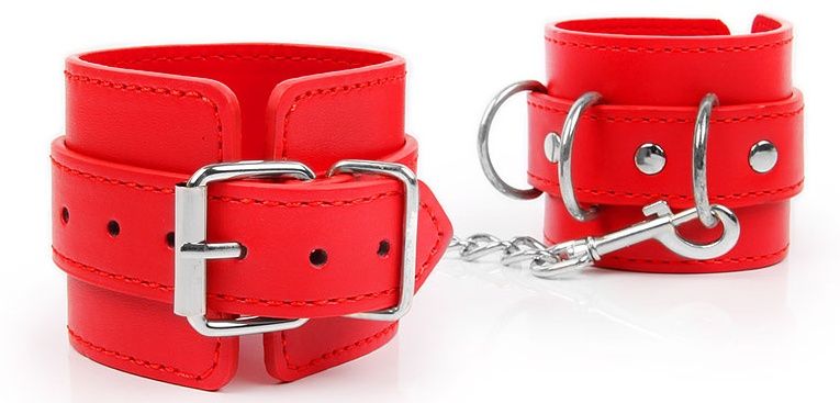 Великолепные наручники под кожу для любителей БДСМ-игр! В комплект входит прочная металлическая цепочка, которой при необходимости можно соединить изделия. Размер наручников регулируется с помощью ремней.