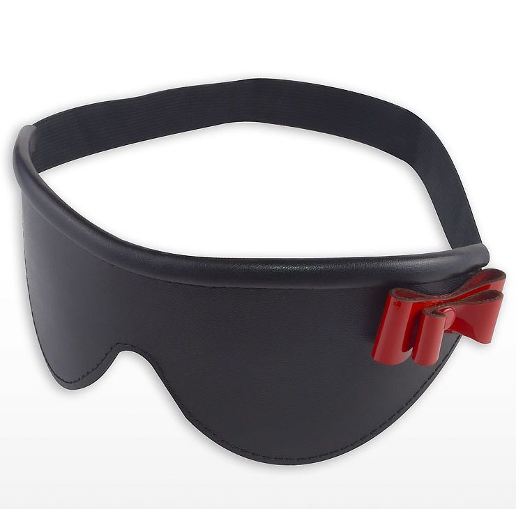 Маска на глаза закрытого типа из натуральной кожи черного цвета, украшенная красным лаковым бантом. Фиксирующая резинка позволяет легко регулировать размер изделия. Внутренняя часть имеет подкладку из велюровой бархатистой кожи. Ширина - 7 см.