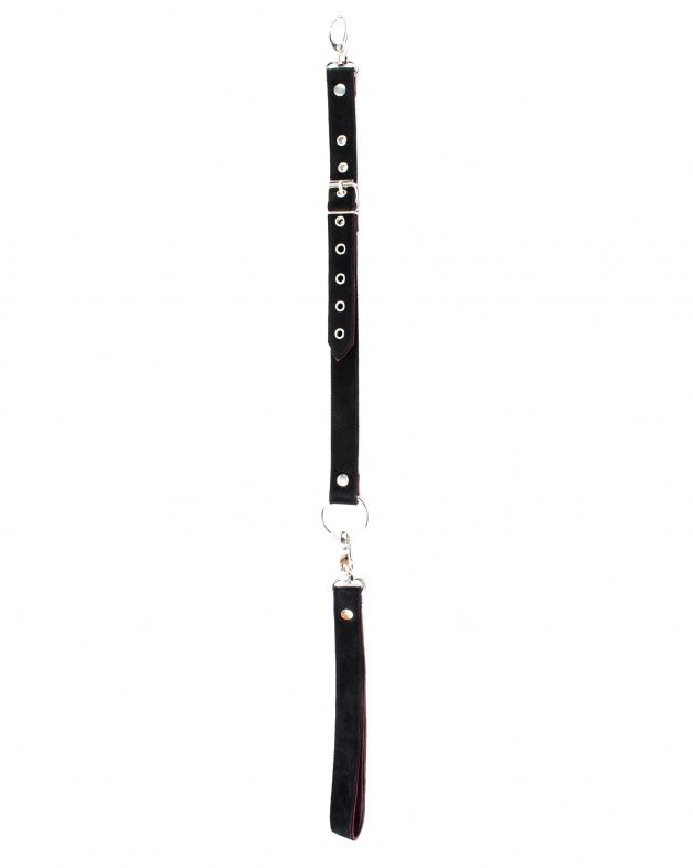 Поводок с одной стороны выполнен из натуральной кожи, а с другой стороны - из замши. Длина изделия регулируется металлической пряжкой, карабины и кольцо надежно фиксируют в подчинении, обеспечивая погружение в сладкий мир ограничений.