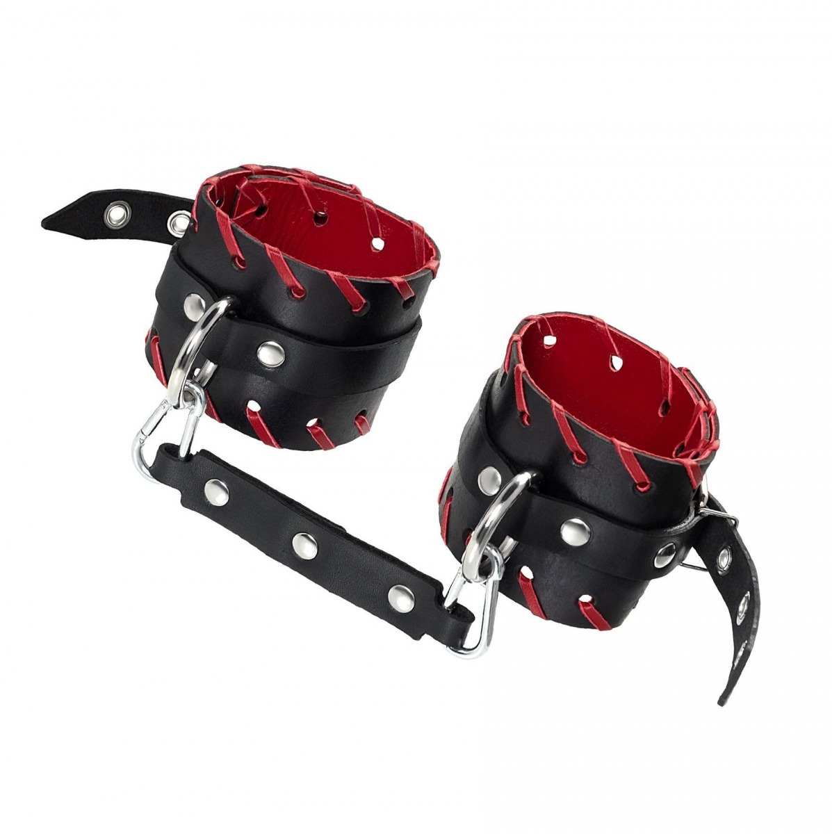 Готовы играть по-взрослому? Не бойтесь своих желаний! Основатели бренда уверены: лучший способ избавиться от искушения - поддаться ему! Добавьте пикантную деталь в ролевую игру и воплотите самую смелую сексуальную фантазию в реальность! Двухслойные кожаные оковы с окантовкой красного цвета, могут стать стильным аксессуаром на «свободных» руках, но могут послужить вашим целям и фантазиям по своему прямому назначению. Наличие двух карабинов и колец позволяет использовать изделие как раздельно – аксессуар-манжеты, так и как наручники для фиксации. К широким металлическим кольцам также можно присоединить и другие аксессуары при помощи карабинов. Благодаря универсальному размеру наручники могут использоваться и мужчинами, и женщинами. Размер легко регулируется с помощью металлических пряжек, органично вписывающихся в общий стиль. Длина манжет - 25 см, ширина манжет - 6,5 см. Длина сцепки - 20 см.