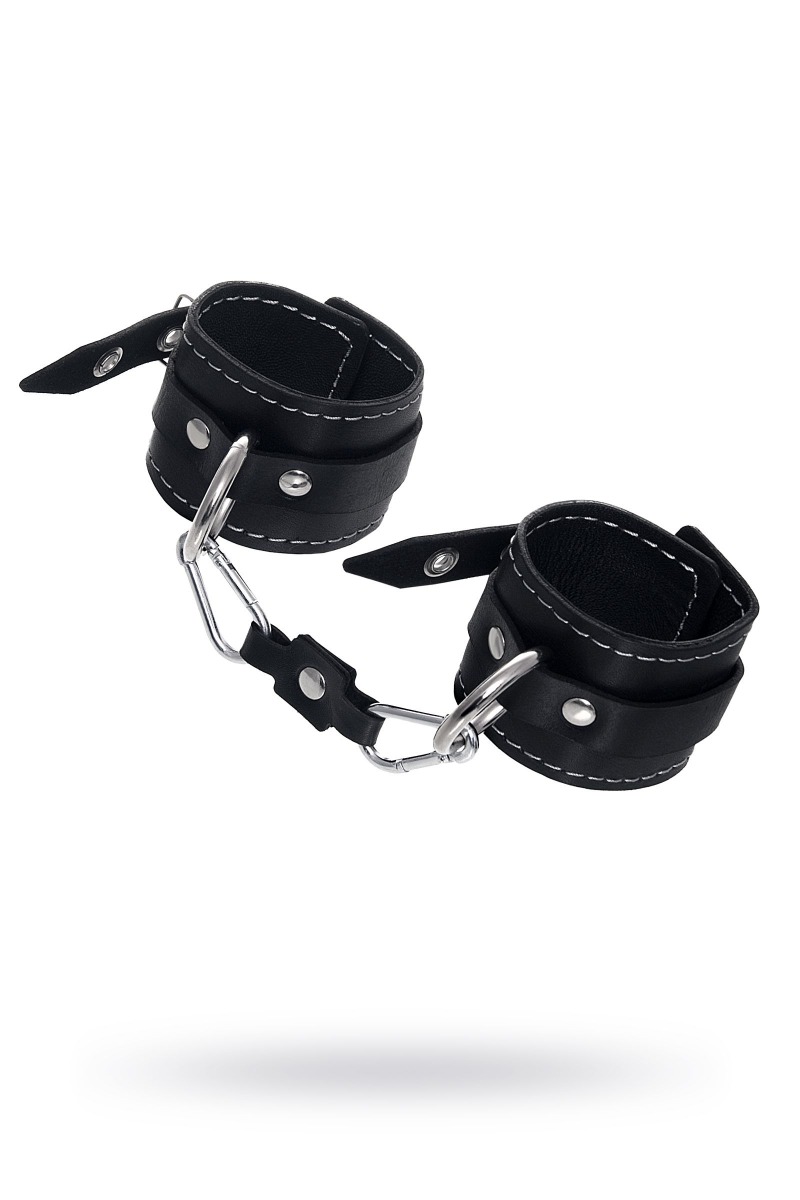 Готовы играть по-взрослому? Не бойтесь своих желаний! Основатели бренда уверены: лучший способ избавиться от искушения - поддаться ему! Добавьте пикантную деталь в ролевую игру и воплотите самую смелую сексуальную фантазию в реальность! Двухслойные кожаные наручники с контрастной строчкой белого цвета могут стать стильным аксессуаром на «свободных» руках, но могут послужить вашим целям и фантазиям по своему прямому назначению. Наличие двух карабинов и колец позволяет использовать изделие как раздельно – аксессуар-манжеты, так и как наручники для фиксации. К широким металлическим кольцам также можно присоединить и другие аксессуары при помощи карабинов. Благодаря универсальному размеру наручники могут использоваться и мужчинами, и женщинами. Размер легко регулируется с помощью металлических пряжек, органично вписывающихся в общий стиль. Ширина манжет 5,5 см, длина манжет 20 см, однако может регулироваться благодаря пряжке. Длина манжет - 20 см, ширина - 5,5 см. Длина сцепки - 10 см.