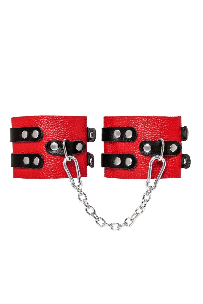 Мягкие оковы с двумя жёсткими ремешками от Pecado помогут обездвижить партнера во время сексуальных прелюдий или жестких БДСМ-играх. Оковы изготовлены полностью из красной, натуральной кожи. Ремешки выполнены из чёрной жёсткой кожи, украшены люверсами. Выделка материала произведена вручную. Ремешки и широкая манжета хорошо держат форму: не тянутся и не мнутся. Качественная металлическая фурнитура добавляет лоска изделию, а аромат натуральной кожи повышает градус возбуждения. Благодаря широкому запасу регулировок, можно подобрать необходимый обхват. Аксессуар удобно застегивать и легко расстегивать. При правильном использовании не оставляет следов на теле и не доставляет дискомфорта. Манжеты оков соединяется между собой помощью двух карабинов и съемной стальной цепочки. Подходит и для женских, и для мужских ног. Длина манжет - 25 см, ширина - 7 см. Длина сцепки - 20 см.