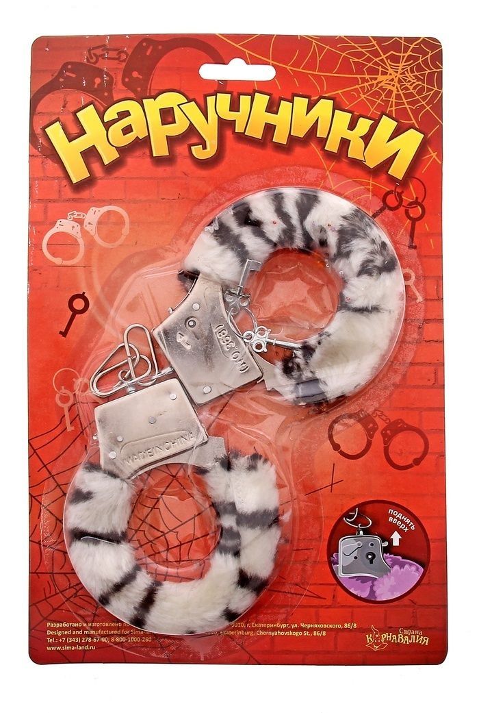 Металлические наручники с чёрно-белой плюшевой отделкой.