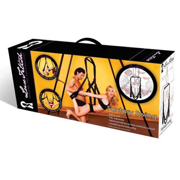 Потолочные качели для воплощения любых эротических фантазий! С этим девайсом невозможное станет возможным! Добавьте разнообразия с свою сексуальную жизнь - эти качели позволят Вам опробовать огромное количество секс-позиций, которые раньше были просто недоступны! В комплект входит все, что потребуется для закрепления этих качелей на потолке, а съемный карабин позволит вешать качели только когда это необходимо. Мягкие черные чехлы и прочные стропы обеспечивают максимально комфортное использование качелей. Заявленная прочность - вес до 200 кг.Качели крепятся к потолку, изображенный на коробке напольный каркас не является частью комплекта.