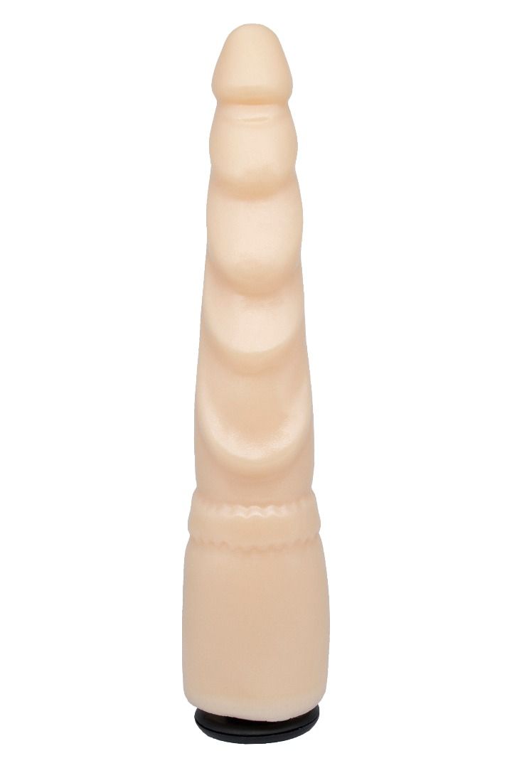 Насадка–плаг в виде «елочки» почти правильной остро-конической формы, с маленькой головкой. Изделие имеет небольшие, округлые «волны» на поверхности. Правильная конусовидная форма, небольшой перепад в размере рельефа изделия позволяет нежно расширять и массировать при введении изделия. Обычно применяют для анального секса. Полимер имеет сертификат для использования в бытовых целях. Данный фаллоимитатор имеет в комплекте коннектор (соединитель). Это сделано для удобства потребителей. Можно соединить с любым харнессом, приобретенным ранее или, даже, изготовленным самостоятельно по индивидуальным параметрам. Коннектор состоит из двух развинчивающихся половинок, которые можно с помощью круглых площадок легко прикрепить к любой поверхности. Рабочая длина - 14,5 см. Минимальный диаметр - 2,4 см.