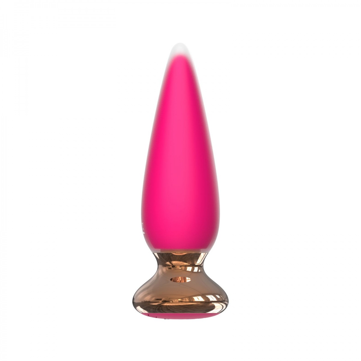 Гладкий анальный вибратор с 10 режимами вибрации и дистанционным пультом управления. Рабочая длина - 9,5 см.