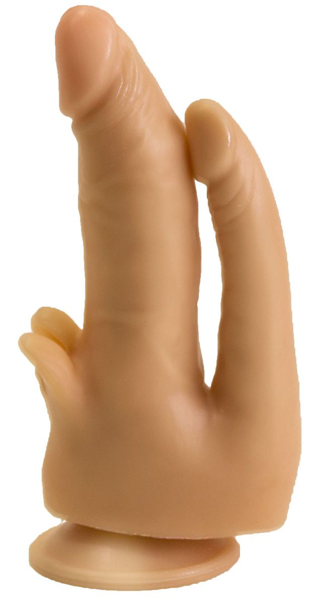Получить наслаждение 2-в-1 проще, чем может показаться. Эта бежевая секс-игрушка из бархатистого на ощупь материала представляет собой два сросшихся в основании фаллоса. Тоненький ствол с чуть вытянутой головкой идеально подходит для анальной стимуляции. Крупный, с пышными венами и мягкими лепестками для клиторального массажа, подарит самые чувственные проникновения в лоно. Одновременная стимуляция внутри и снаружи – гарант действительно сильных ощущений и мощного оргазма. Подошва-присоска облегчит пользование реалистичным стимулятором. Диаметр анального отростка – 2,1 см.