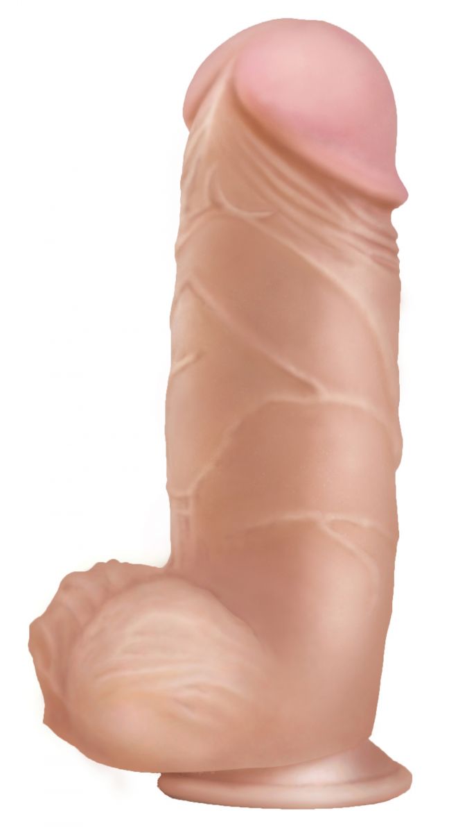 Фаллоимитатор на присоске имеет форму члена с ярко-выраженной головкой, рельефный, выполненный из сверхсовременного материала нового поколения, обладающий уникальными свойствами по пластичности, передающий эффект очень мягкой текстуры кожи. Рабочая длина - 13 см.