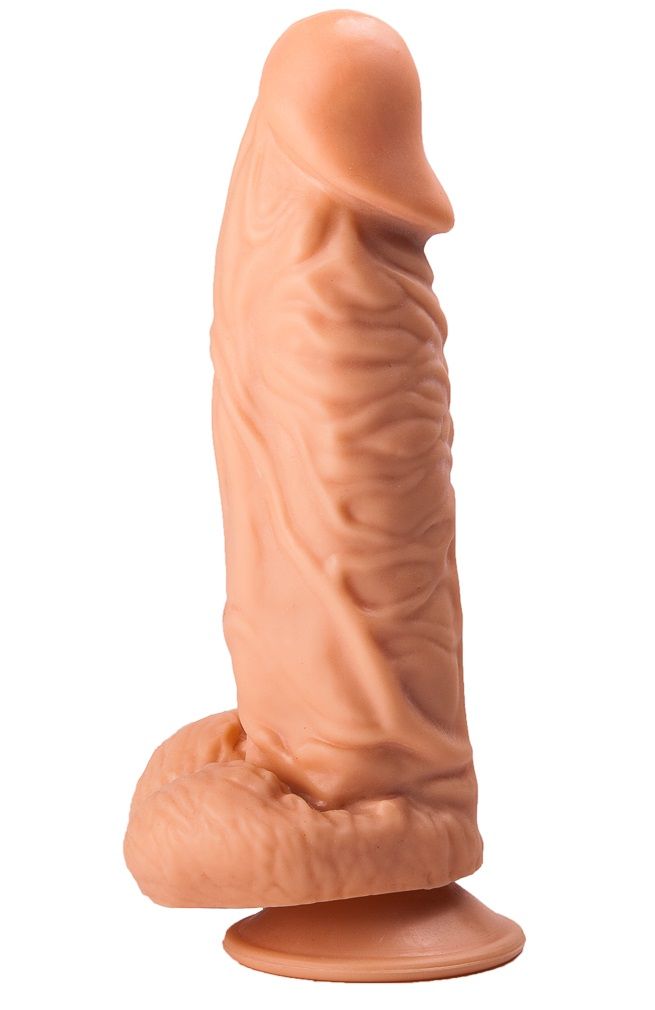 Это невероятная секс-игрушка для ценительниц внушительных размеров члена. Изделие имеет реалистичный внешний вид: текстурированная выпуклыми венами поверхность, ярко выраженная головка и крупная мошонка в целом выглядят в точности, как настоящий пенис мужчины. Секс-игрушка имеет удобную присоску в своем основании, что позволяет ее хозяйке прикрепить аксессуар к любой поверхности (например, к столу).