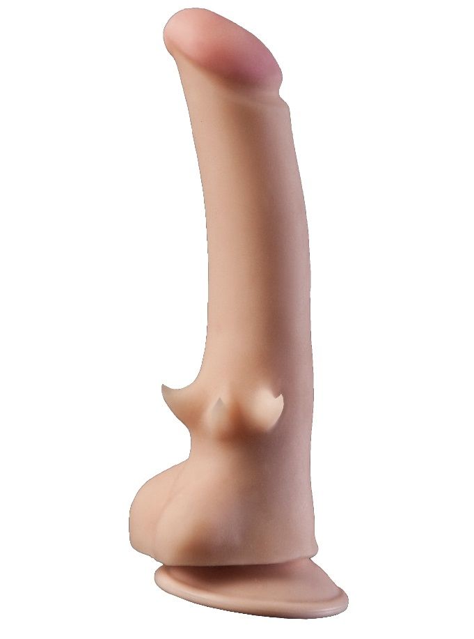 Телесный фаллоимитатор на присоске со стимулирующими усиками.