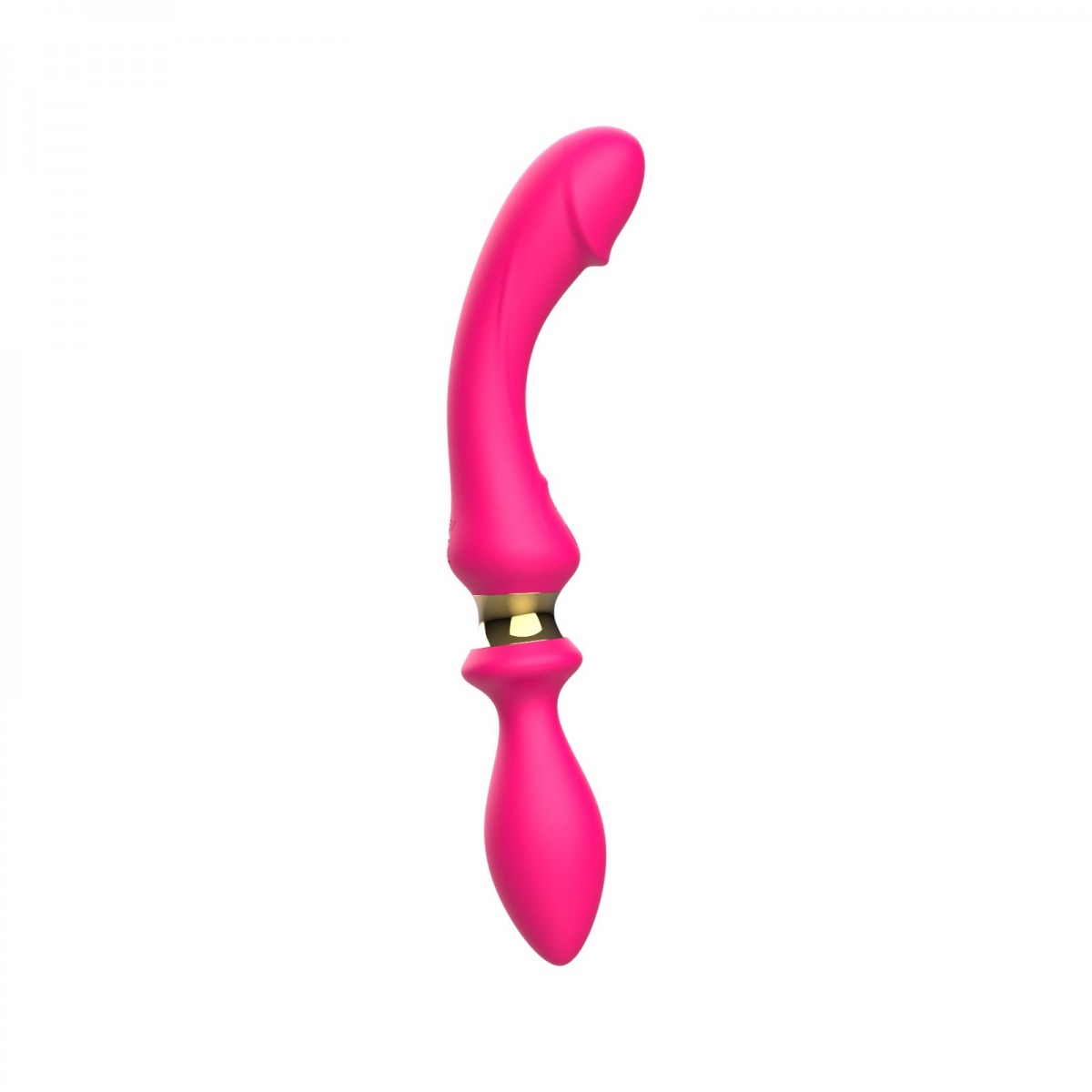 Розовый двусторонний вибромассажёр. Может использоваться обоими партнёрами - для вагинальной или анальной стимуляции. Имеет 10 режимов вибрации. Рабочая длина большого отростка - 12,8 см, диаметр - 3,8 см. Рабочая длина малого отростка - 9,1 см, диаметр - 3,7 см.