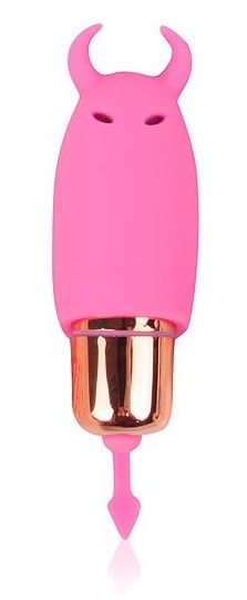 Добавьте перчинки в свою интимную жизнь с вибромассажером из коллекции Cosmo. Миниатюрный эротический аксессуар придется по вкусу любительницам креативных решений. Благодаря режиму «вибрация» секс-игрушка прекрасно подойдет для стимуляции эрогенных зон (клитора, груди, ягодиц и т.д.). Необычный дизайн пробудит фантазию, а маленькие рожки подарят дополнительный возбуждающий эффект. Вибромассажер изготовлен из высококачественного гипоаллергенного силикона. Имеет мягкую, приятную на ощупь поверхность. Изделие включает в себя насадку, выполненную в красивом розовом цвете, и вибропулю.